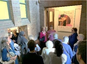 « Préparant l’autel pour la messe un couple accompagné d’un adulte et d’une jeune fille, m’abordent : ils sont venus à Vanves chez leur fils et en profitent pour revoir l’église du Prieuré. La dame, ancienne du conseil municipal connaissait Soeur Martin, son mari avait aidé pour des travaux Soeur Marie-Jean (il l’avait surnommée : Sr Bricolo) Désirant acheter quelques produits à notre librairie, en particulier une Bible pour leur petite-fille présente qui n’a jamais vu une bénédictine, très intéressée par la foi, je les accompagne. Puis, une idée malgré l’heure avancée, leur faire visiter l’exposition.