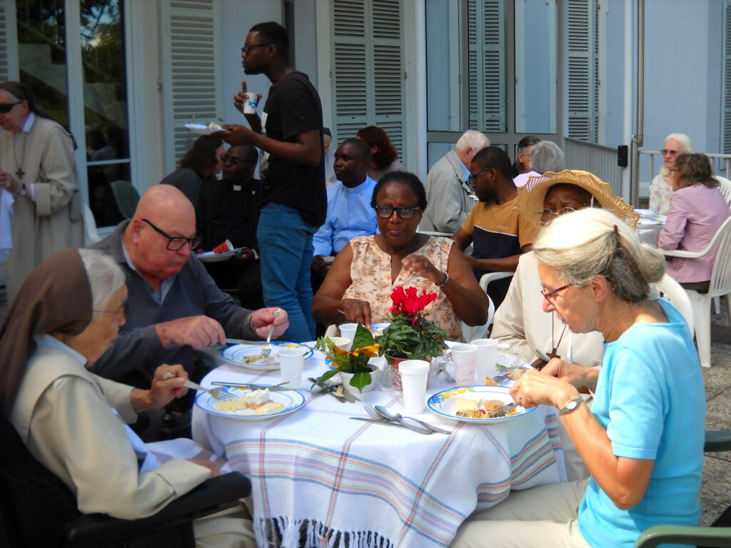 Messe à 11h suivi d’un buffet mosaïque que nous nous offrons mutuellement, chacun apportant un plat ou ce qu’il peut.