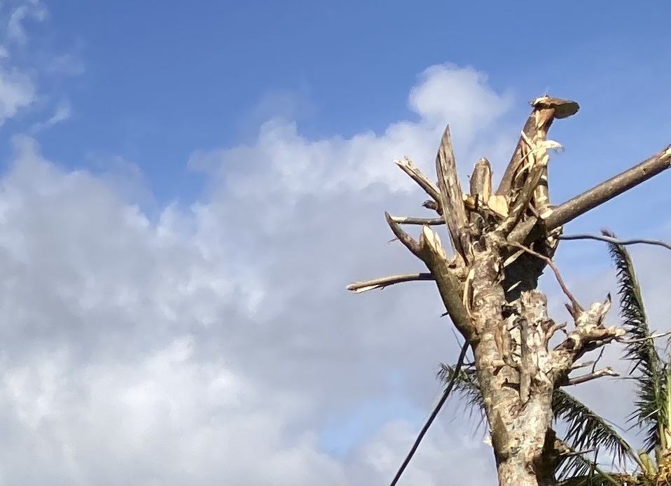 Les oranges prêtes à vendre dans 15 jours sont tombées par terre, de même aussi les fruits à pain.