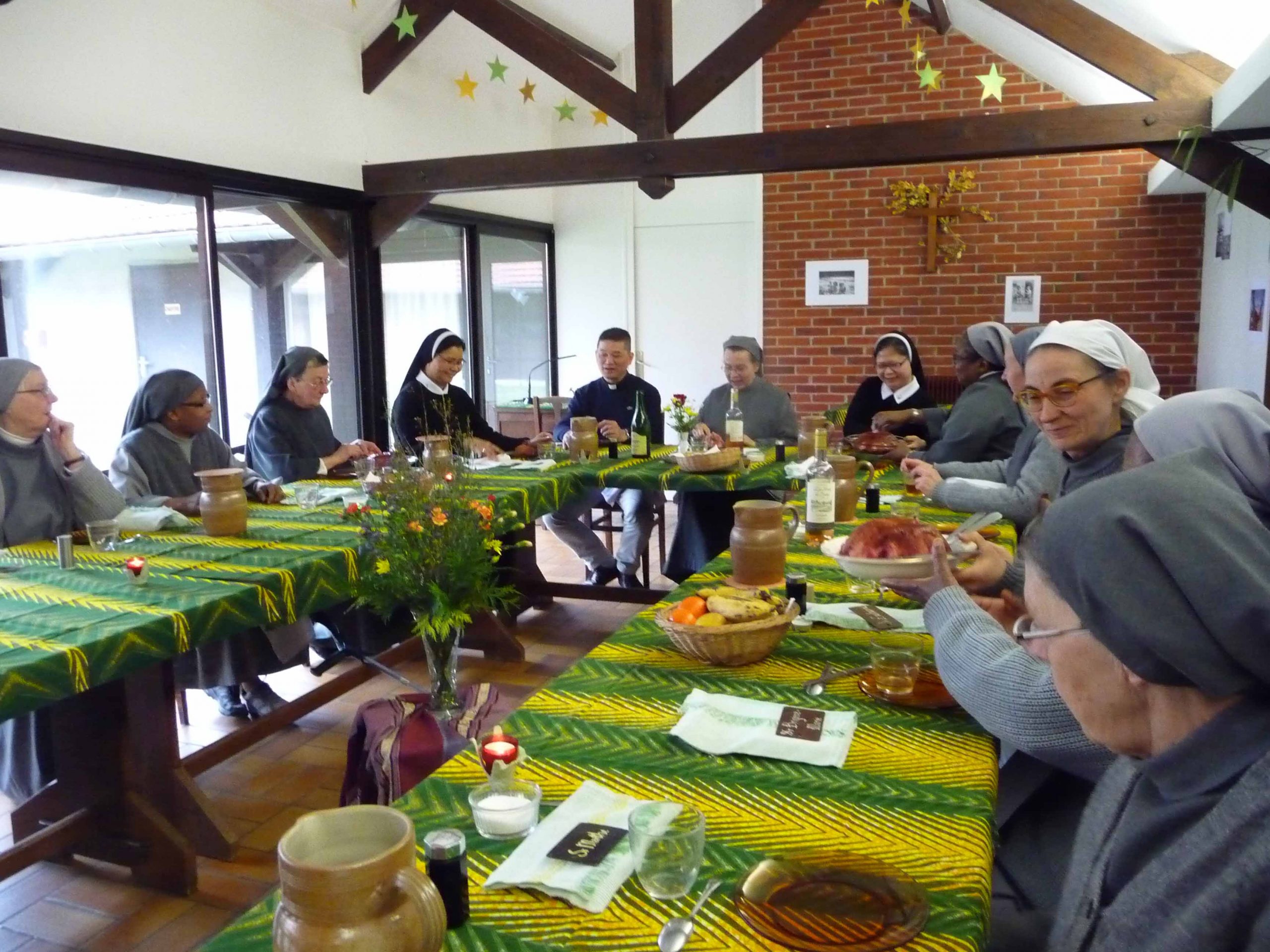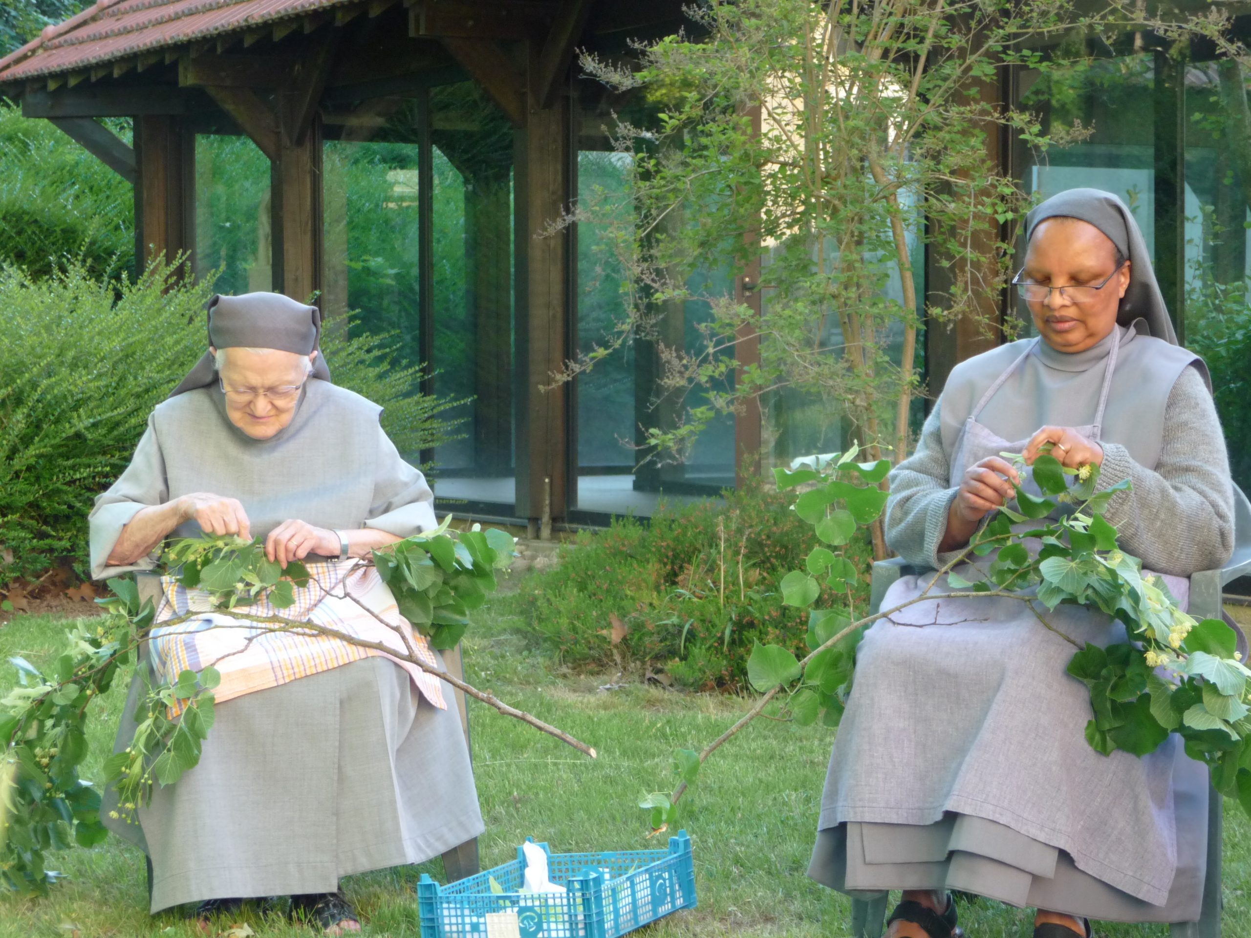 Le mois de septembre a commencé pour nous avec l’arrivée des amis venus nous aider pour préparer  la profession de sœur Christelle : chaises et barnums à installer pour que tous puissent participer à la célébration du 2 septembre, et buffet qui suivait la profession.  Après une après-midi laborieuse, tout était prêt, et nous pouvions écouter les nouvelles de Landévennec apportées par P. Abbé Jean-Michel, venu présider la célébration.