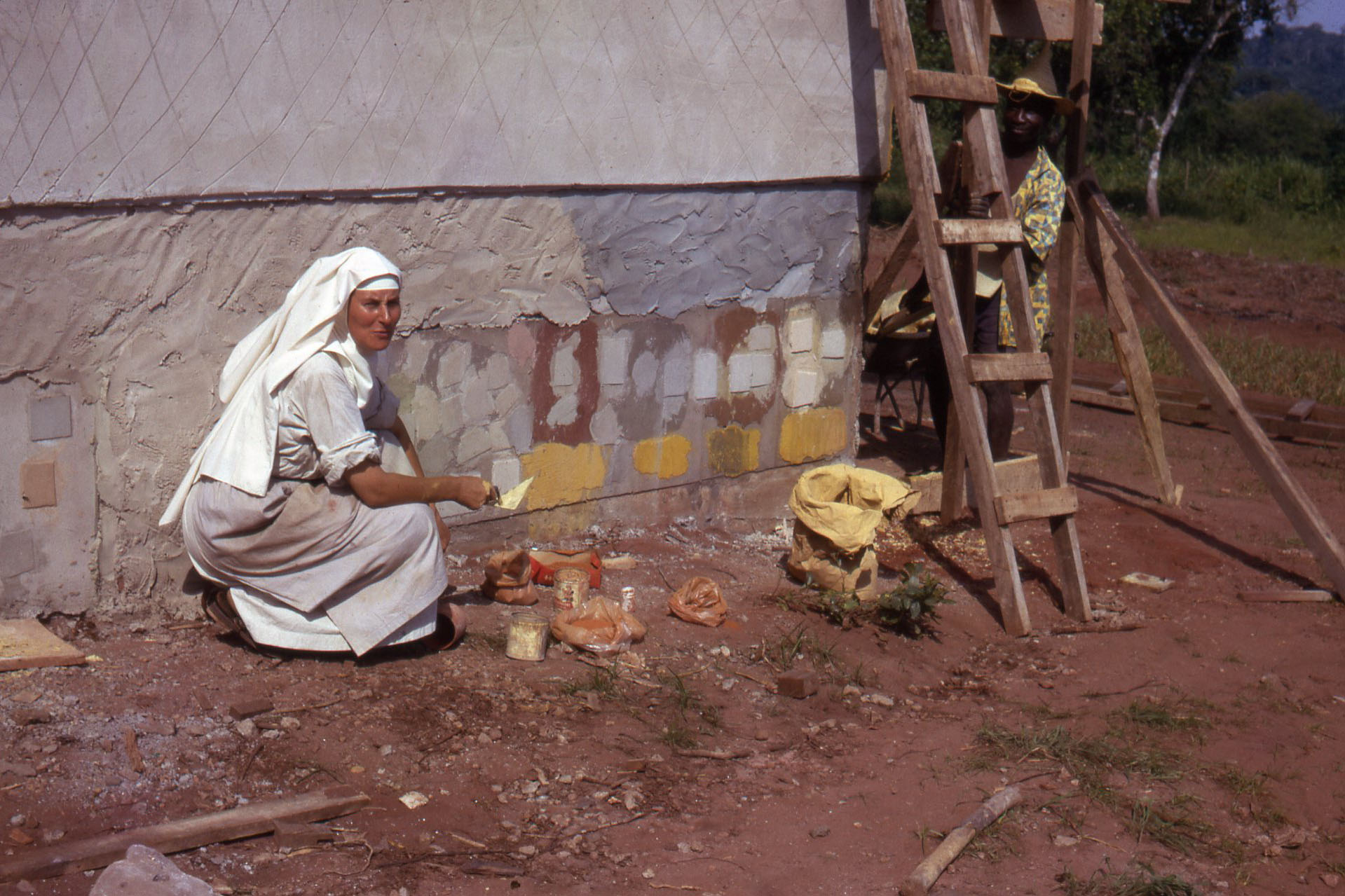 Reçues d’abord dans les Communautés missionnaires, elles purent dès septembre loger dans une maison du village de Toffo, prêtée par un notable, à 2 km du lieu choisi pour la fondation. Elles commencèrent la construction de deux bâtiments sans étage.