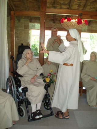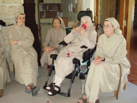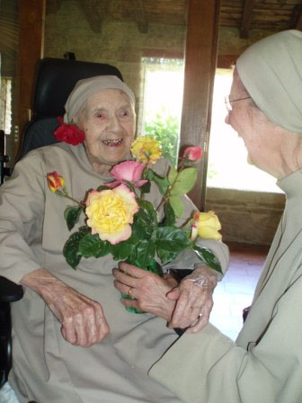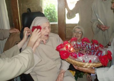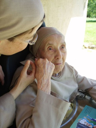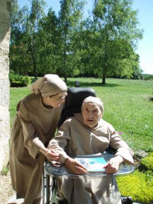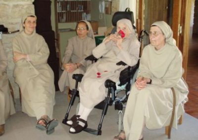 Aujourd’hui, à travers sa dépendance importante du grand âge où la mémoire se recentre sur les vieux souvenirs, elle nous donne le témoignage d’une joie de vivre en toute chose, comme le moine humble de la Règle de Saint Benoît, « content de tout » (RB 7,49).