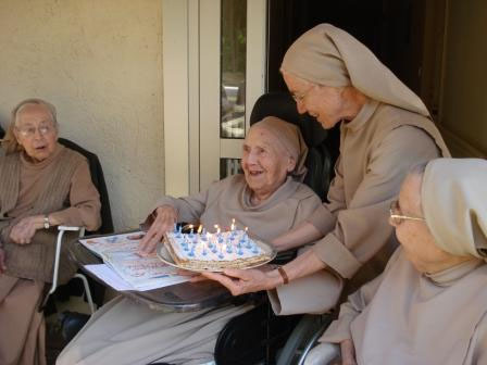 Notre congrégation fête sa première centenaire au monastère de Martigné-Briand. (La deuxième viendra vite la rejoindre : Sr Pierre de Vanves le 30 décembre prochain !)