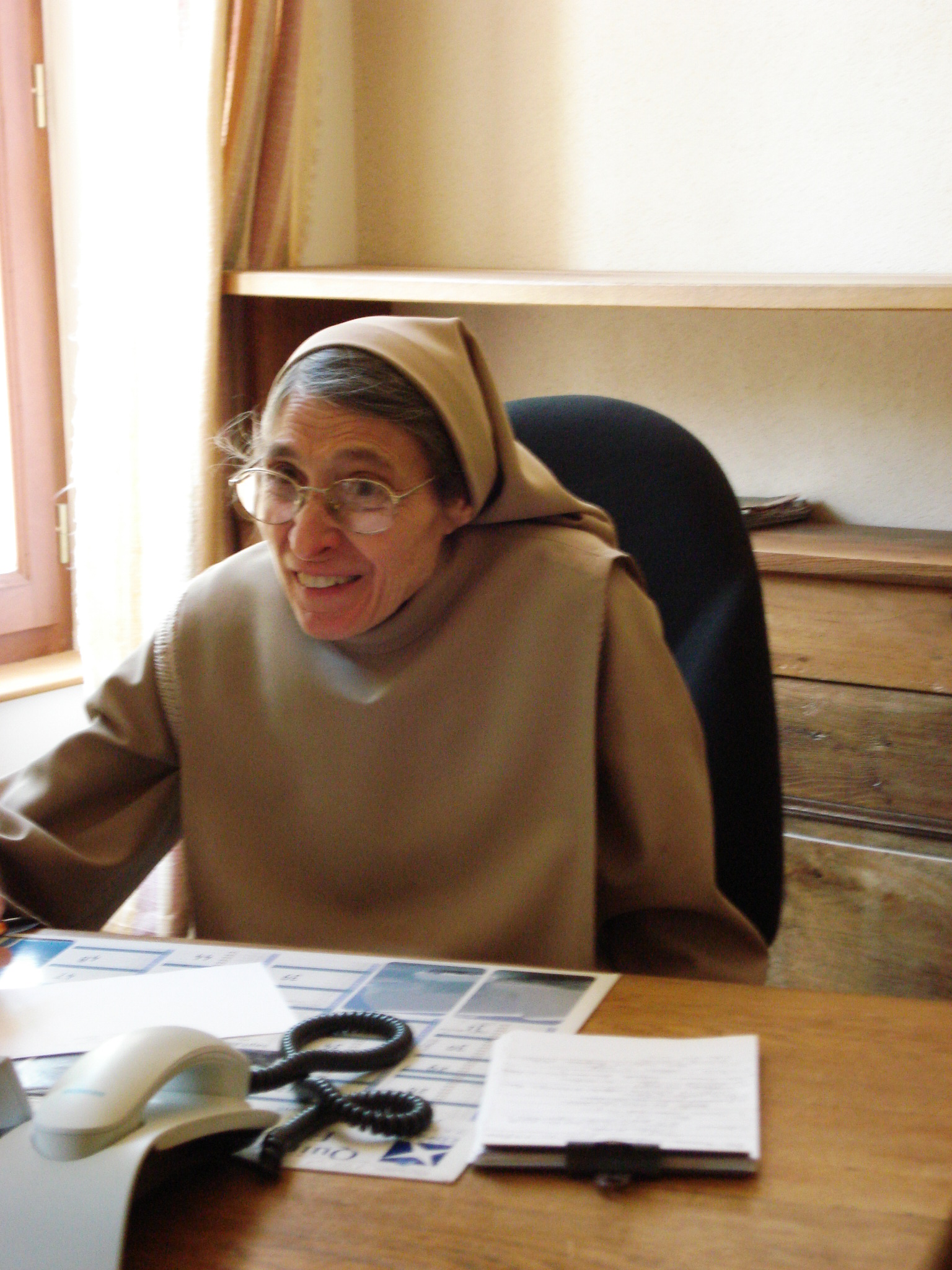 Comment tenir ensemble le respect de ta volonté de ne pas te mettre en avant et notre désir de t’exprimer notre reconnaissance pour tout ce que tu as été pour nous, ta famille, ta communauté et tes amis ? Pas facile ! Tu as su entretenir les liens du cœur : avec ta famille dont tu es restée toujours proche, avec tes amis du groupe de l’aumônerie qui ont manifesté leur émotion à la nouvelle de ton départ, avec tes collègues de travail comme ingénieur informaticienne du temps des tout premiers ordinateurs, avec tes connaissances d’Etoy, belle aventure de l’œcuménisme dont nous bénéficions encore aujourd’hui, avec les moines et les moniales que tu as côtoyé à Igny, en congrégation ou aux sessions des cellériers… et bien d’autres encore… Peut-être ton sourire et les yeux pétillants relevés par nombre de témoignages, non sans aussi une pointe d’humour, ont facilité cette fidélité de la relation. Mais il ne faut pas occulter aussi l’épreuve, les épreuves que tu as pu traverser avec une vraie foi. Tu me disais, ces derniers temps, être marquée par les Psaumes qui parlent du « souffle », toi qui avait du mal à trouver ton souffle. Comment ne pas prier avec toi, le Psaume 142 : « Le souffle en moi s’épuise, mon cœur au fond de moi s’épouvante. Vite, réponds-moi, Seigneur : je suis à bout de souffle ! Ton souffle est bienfaisant : qu’il me guide en un pays de plaines. » Oui, que le souffle de l’Esprit t’emmène jusqu’aux sommets de la vie éternelle ! Un Père que tu connaissais bien m’a écrit, hier : « Certes je connaissais la fragilité de notre chère Soeur Marie-Liesse, mais elle était « fragile » depuis si longtemps et son aveu de faiblesse était accompagné d’un sourire si lumineux que je ne pensais pas que l’évènement, à la fois redouté en son corps et espéré par toute la force de sa Foi, surviendrait ainsi. Que les larmes se transforment, comme dans le psaume, en « cris de joie ». Voici que soeur Marie-Liesse est entrée dans la Vérité de son Nom. » Et le Père Bernard Ducruet, disait dans l’homélie de ta profession perpétuelle : « Sœur Marie-Liesse, l’orientation fondamentale de notre vie monastique et chrétienne c’est la JOIE. Le moine vit dans la joie, sans excès et sans envie, dans une joie qui entretient celle des autres. Sa joie terrestre est nourrie et abreuvée de sa joie divine. La joie, c’est l’élément essentiel de notre Foi. Elle est si profondément enfouie dans la Foi qu’elle existe même là où nous ne la percevons plus » Que la Résurrection du Christ à laquelle tu participes désormais soit notre JOIE ! Merci pour cette joie partagée.