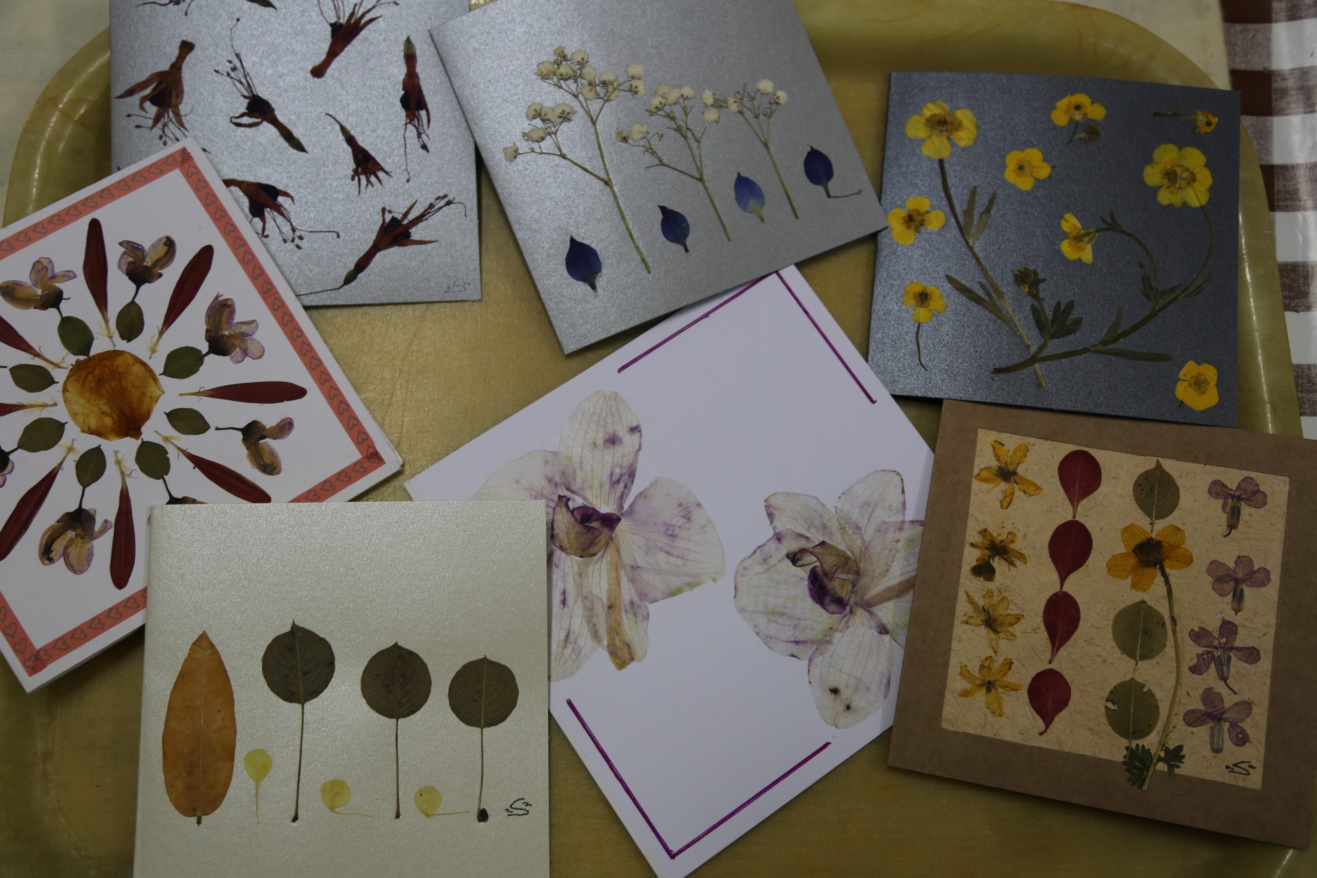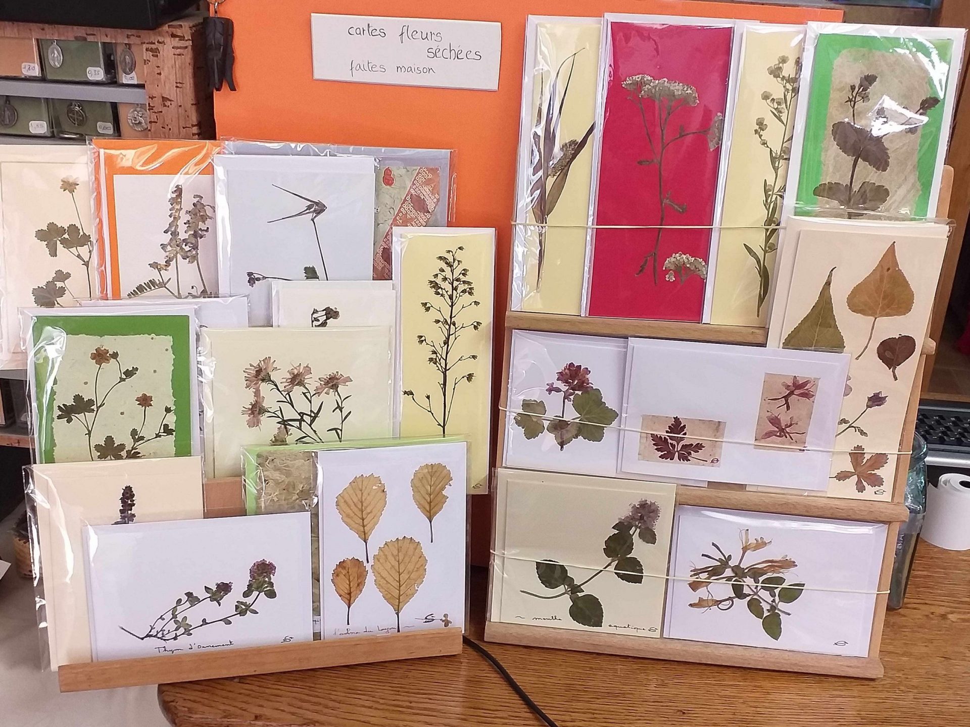 Après la confection des confitures dont elle avait imaginé de nombreuses recettes, elle s’est lancée dans la confection de superbes cartes de fleurs séchées.