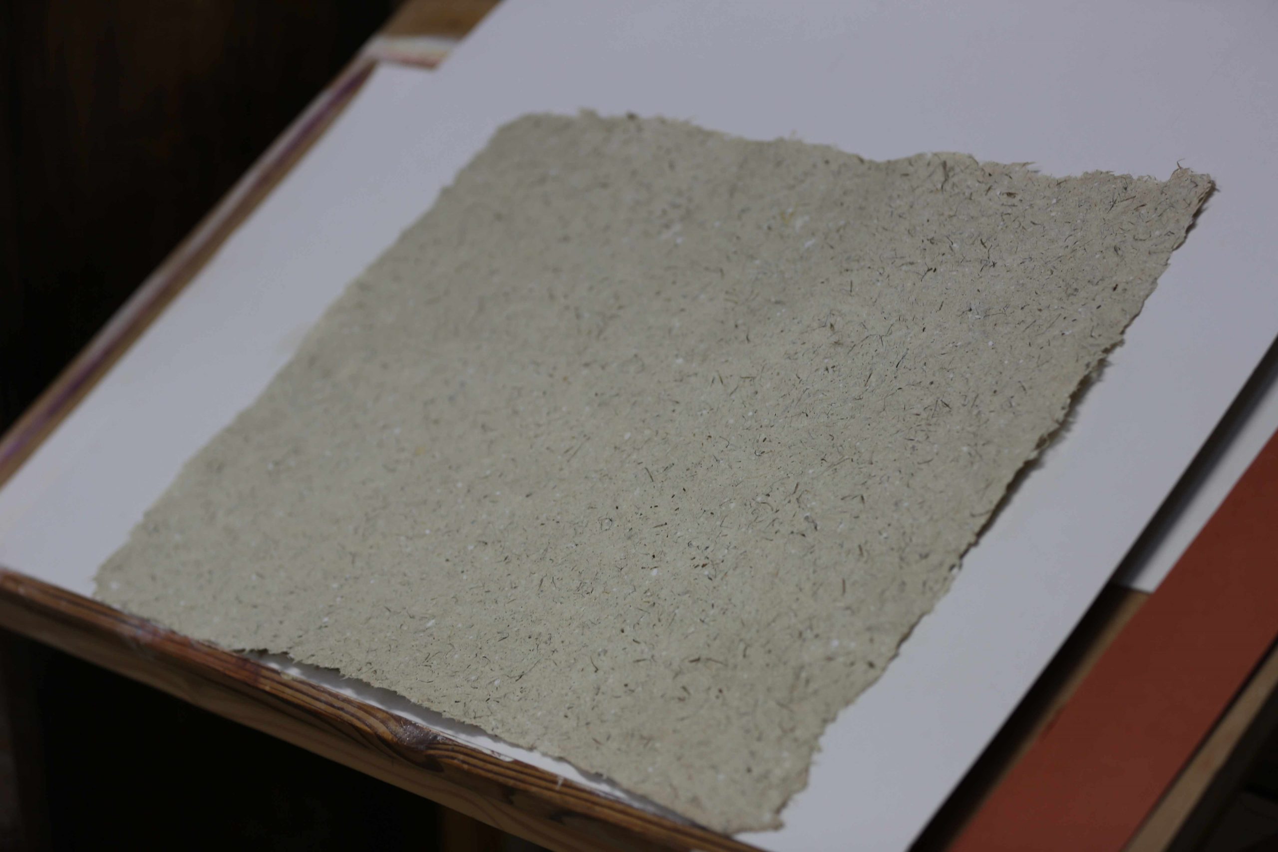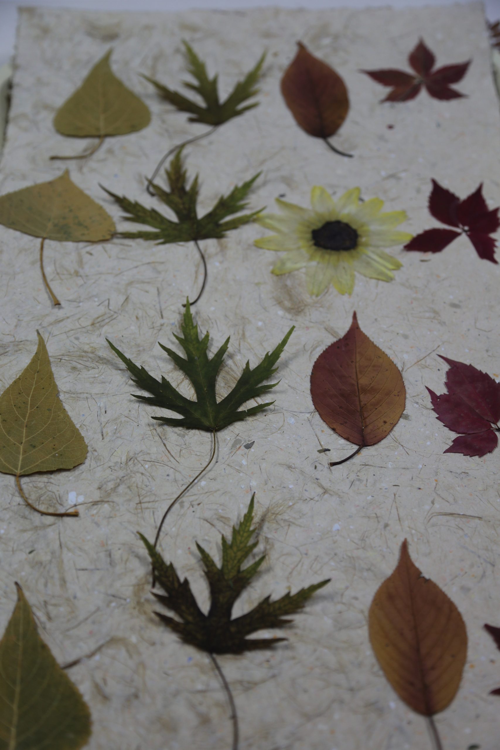 Ces fleurs sont ensuite collées sur du papier que sœur Marie-Benoît fabrique elle-même. Alors là tout y passe : tissus, herbes diverses et feuilles de tous arbres.