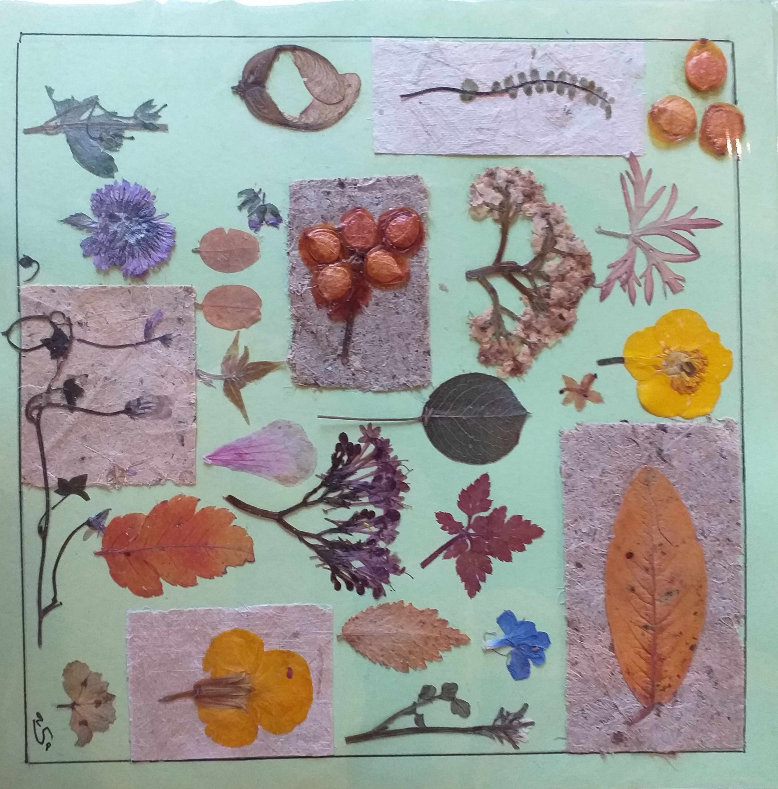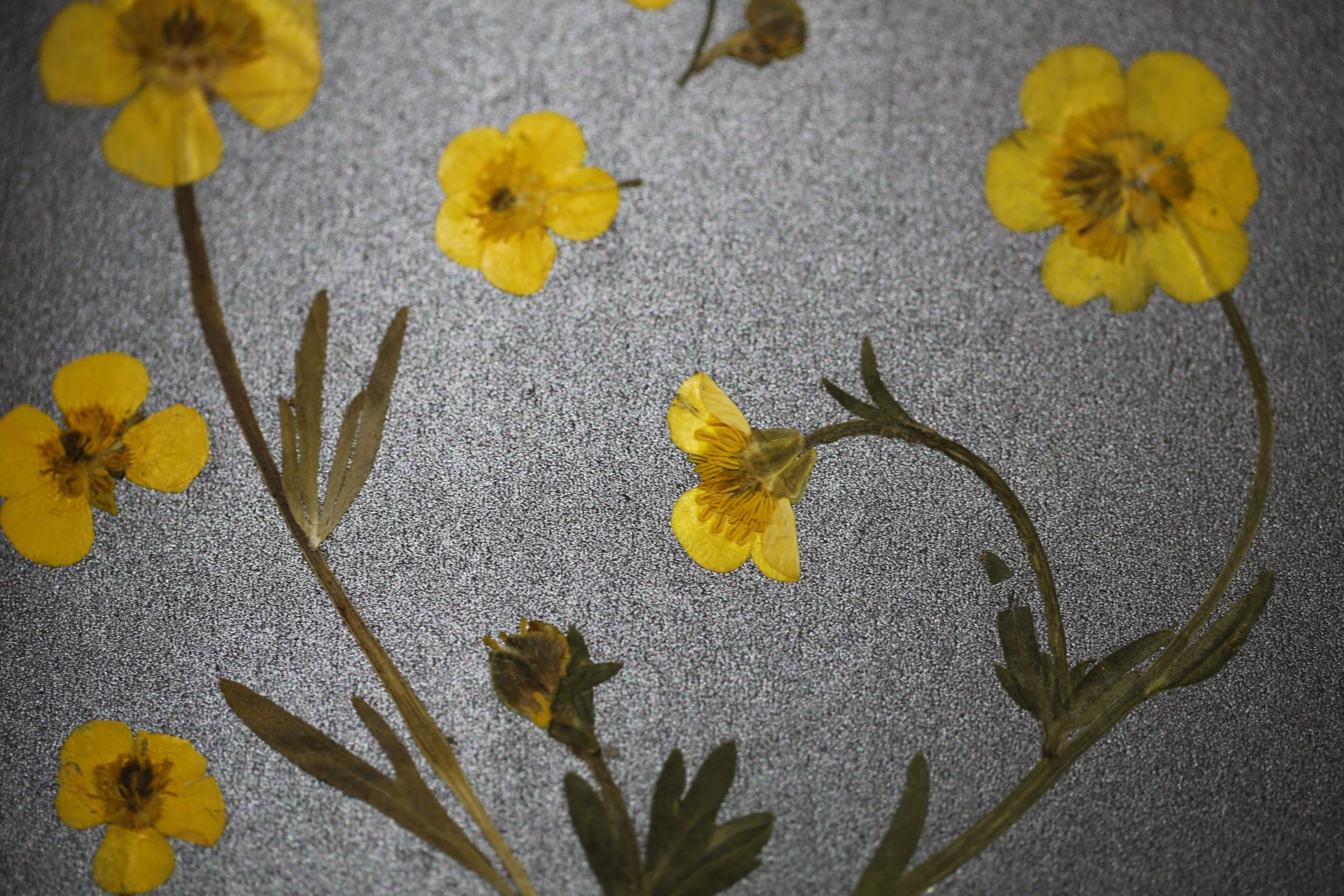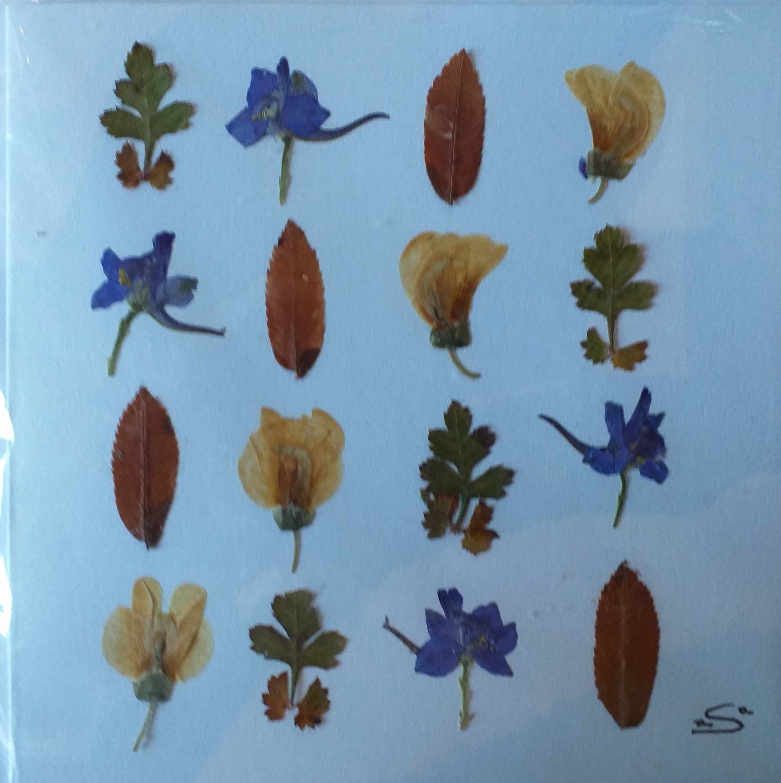 Fleurs qu’elle collecte au cours de ses promenades et qu’elle fait sécher selon une méthode particulière qui leur conserve toutes leurs couleurs.