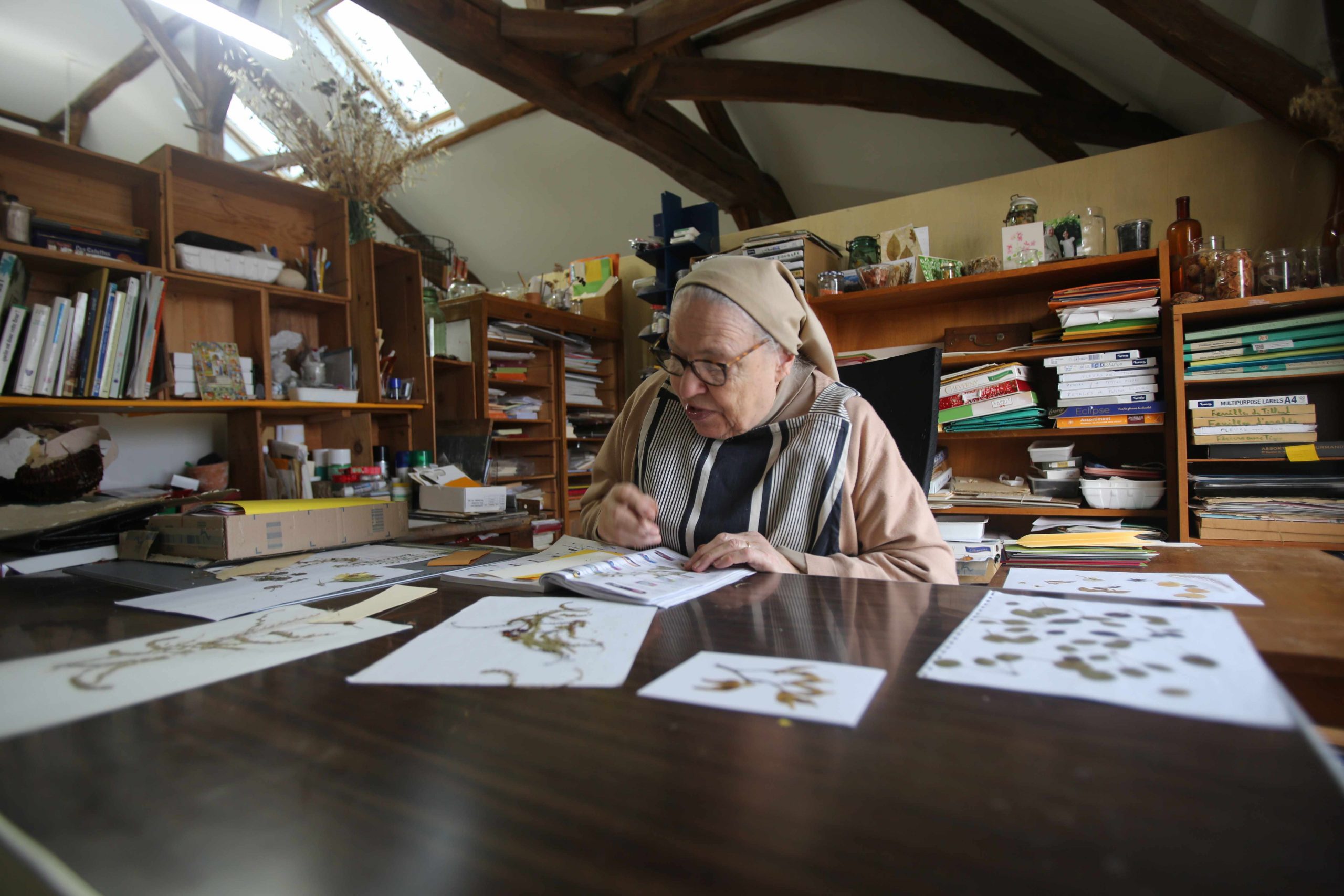 L’atelier de cartes de fleurs séchées est le domaine de sœur Marie-Benoît !