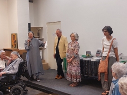 Le samedi nous avons participé à la messe (où Kurt a prêché et le père Tisse a concélébré) et après un délicieux buffet offert par la monastère, nous avons eu un bel après-midi d’échange. Nous étions, entre Amis de Françoise et Amis du Monastère, une trentaine de personnes, plus les sœurs. Françoise était là aussi avec son sourire et regard lumineux.