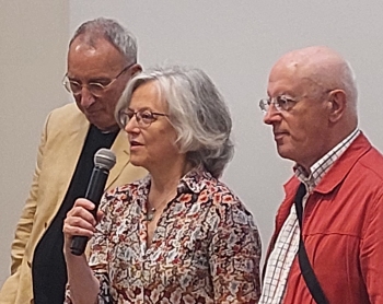 « Mémoires d’Avenir » a été présenté par M. Marie Madeleine. Catherine, Kurt et Elisabetta ont aussi dit quelques mots. Jérémy n’a pas pu être présent. Presque un miracle que ce tome de 650 pages soit déjà là, quand on en parlait seulement comme une possibilité lointaine le dernier septembre. Tous nous avons lu les quatre cahiers que Françoise nous avait donné, mais les voir imprimés dans un bel volume accessible à tout le monde est quand même très beau!