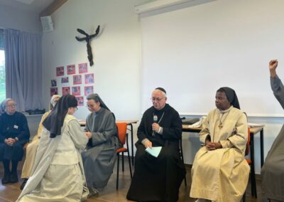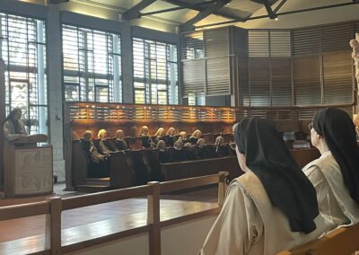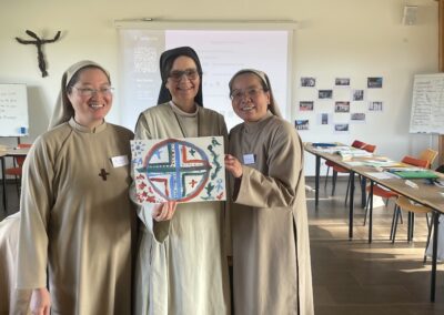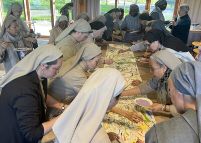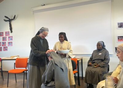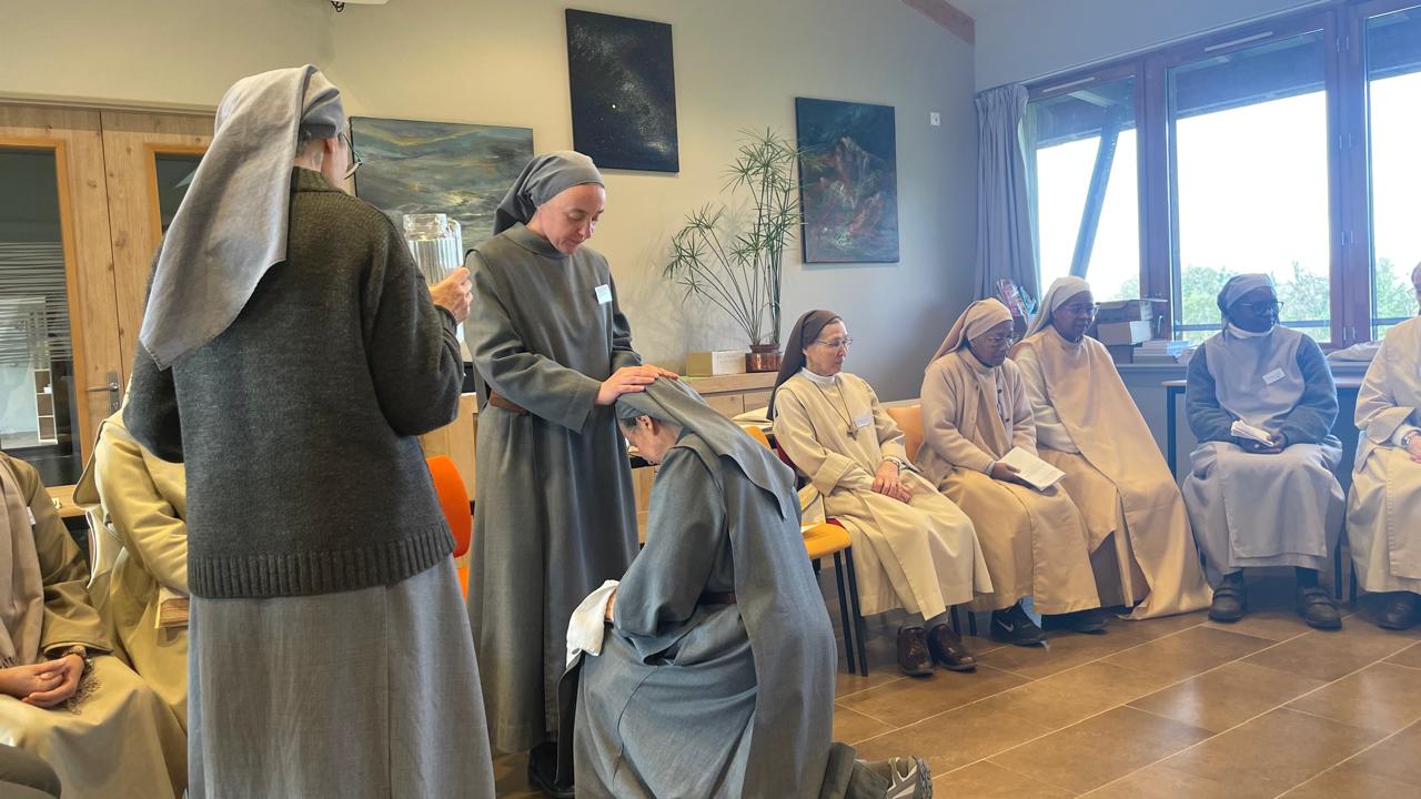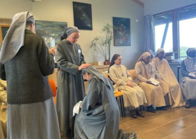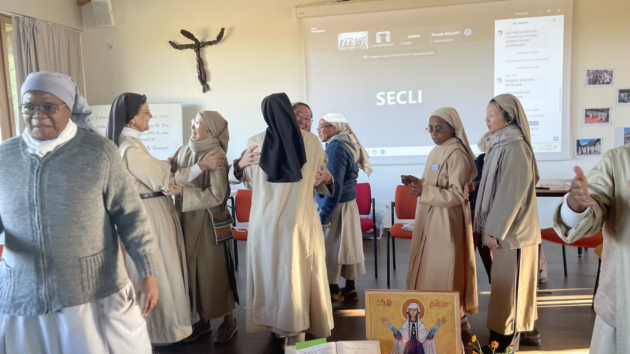Cette fusion/intégration a été accordée par décret de Rome le jour du Sacré Cœur, le 7 juin 2024, et nous avons pu célébrer ensemble cet évènement au cours du chapitre général le vendredi 15 novembre, puis à Brou sur Chantereine, avec les sœurs de Brou, la prieure du prieuré de Shirako au Japon, et en communion avec les sœurs âgées des Etats-Unis, le jeudi 28 novembre.