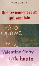 Plaies d’Egypte – Pharaon a des problèmes de coeur – Marie-Laure Durand ; Initiation à la prière – Romano Guardini ; Que reviennent ceux qui sont loin – Pierre Adrian ; Petites boîtes – Yoko Ogawa; L’île haute – Valentine Goby