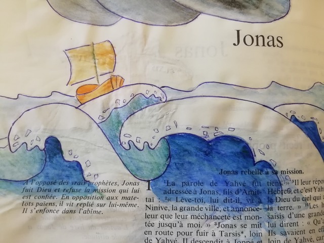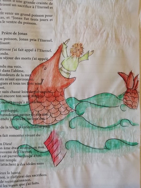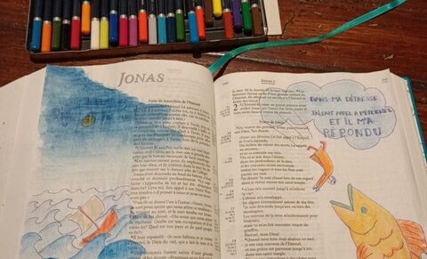 « Pendant qu’on dessine, on s’imprègne du texte, et avec l’aide de tes commentaires et de ceux de la sœur, on y entre profondément. Au point que dans ce récit de Jonas, j’ai vraiment pu découvrir, toucher, contempler et m’émerveiller de la surabondance de l’Amour de Dieu, qui nous poursuit et nous enveloppe sans cesse. Et cela grâce au dessin. Je pense que je n’oublierai jamais cette découverte. »